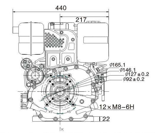 Jednocilindrični, vertikalni, četvorotaktni, prinudno vazdušno hlađenje, direktno ubrizgavanje